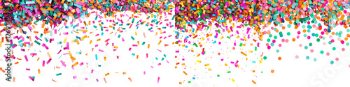 Multicolored confetti explosion background for festive other joyful occasions Vibrant dynamic and visually striking design with scattered and blurred confetti elements