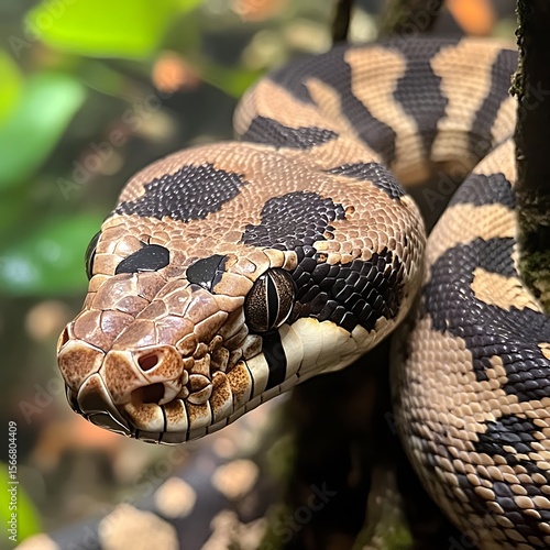Multicolored floral jungle snake resting peacefully high resolution picture