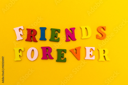 Multicolored letters on a yellow background. Friends forever.