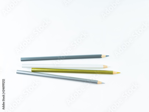Multicolored pencils with free space for text on white background, Color pencils isolated
