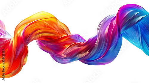 Multicolored twisted abstract wave in motion on a transparent background, smooth multicolored wave shapes, smooth curves. 3D rendering. Generative AI