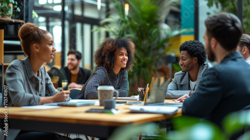 business, team, meeting, office, brainstorming, colleague, work, creative, discussion, professional, multicultural, environment, diversity, collaboration, communication, planning, strategy, corporate, design, innovation, casual attire, smiling, engagement, modern, workspace, indoor, furniture, man, woman, group, interaction, productivity, attire, people, woman, businessman, businesswoman, together, working