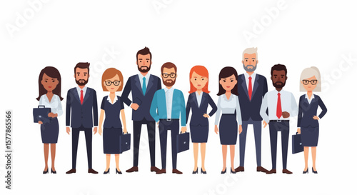 Multinational Business Team with Diverse Office People in Vector Illustration
