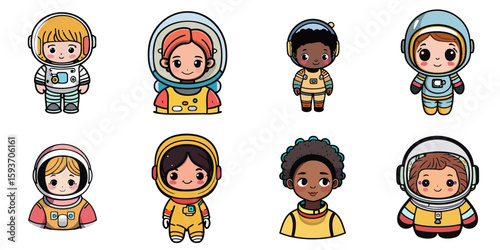 alien, girl, children, children, young, female, youth, cute, happy, playful, innocent, human, person, isolated, vector, illustration, graphic, design, set, collection, doodle, hand-drawn, cartoon, vignetting, simple, space suit, astronaut, space, cosmos, galaxy, science fiction, futuristic, adventure, exploration, funny, whimsical, unique, creative, imaginative, future, dream, imagination, star, universe, planet, boy, people