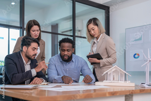 multiracial business team,executives board group working on corporate property investment having discussion on conference table in meeting room
