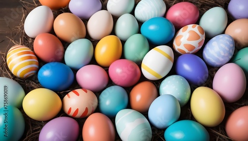Multitude of colorful easter eggs macro background, geometrical, dots, flowers and striped patterns