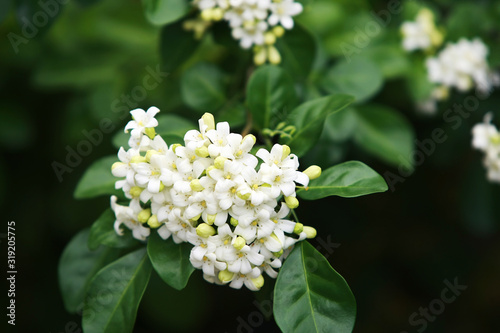 Murraya paniculata flower close up , in the garden