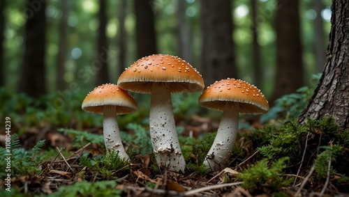 Mushrooms growing in unique shapes among the trees.