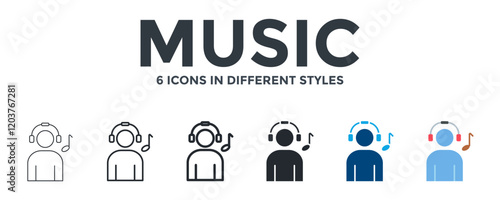 Music Icon In Different Style Vector Illustration. Designed In Thin Line, Regular Line, Bold Line, Glyph, Color Fill, And Flat Style Can Be Used For Web