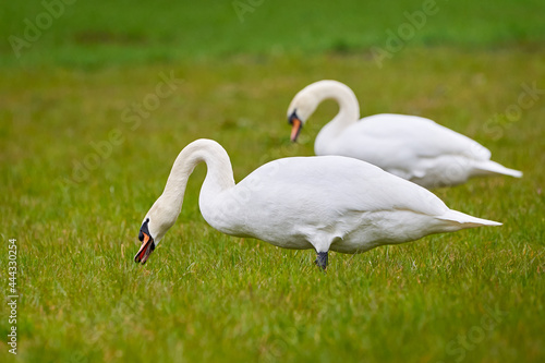 Mute swan eating grass (Cygnus olor)