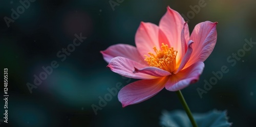 Muted luminescence seeps from a decaying flower, subtle shimmer, gentle glow, soft light