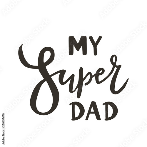 My super dad hand drawn text quote on white background as template badge, icon, poster, sticker, greeting card for Father's day