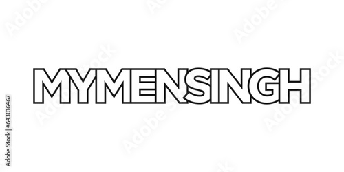 Mymensingh in the Bangladesh emblem. The design features a geometric style, vector illustration with bold typography in a modern font. The graphic slogan lettering.