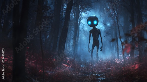 alien, creature, enchanted, forest, encounter, fantasy, paranormal, exploration, mysterious, unknown, extraterrestrial, supernatural, surreal, dark, ominous, eerie, sinister, foreboding, strange, bizarre, haunting, intriguing, imaginative, conceptual, digital, art, stock, photo, online, marketplace, e-business, marketing, sale, wallpaper, background, decor, design, horror, science fiction, fiction, mythology, legend, folklore, discovery