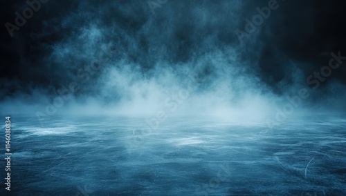 Mysterious Blue Fog on Ice Surface Creating a Calm and Eerie Atmosphere Perfect for Conceptual, Fantasy, or Winter-Themed Projects