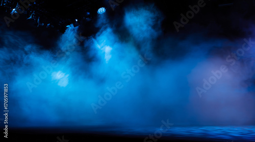 Mysterious blue fog with dramatic lighting — an atmospheric scene that evokes a sense of intrigue and anticipation