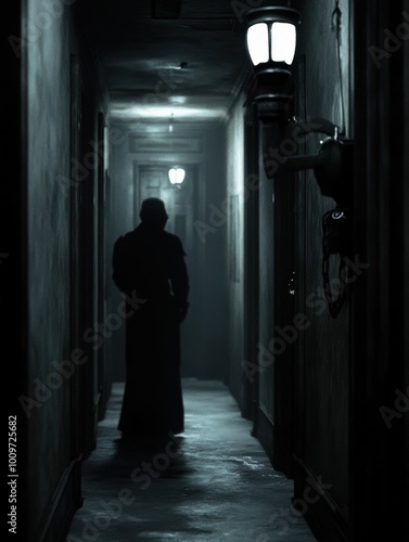 shadow, silhouette, hallway, figure, darkness, light, mystery, portrait, creepy, unknown, eerie, solitude, suspense, corridor, lighting, ghost, chilling, abandoned, dramatic, photo, art, cinematic, character, haunting, fear, anxiety, emotional, tension, black, mysterious, exploration, intrigue, moody, shadow, dim, dark, architecture, building, isolation, atmosphere, silent, ghostly, urban, modern