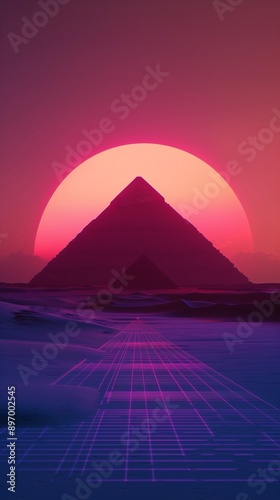 pyramid, egyptian, neon, sunset, aligned, mystery, desert, pyramid, sun, dusk, no people, surreal