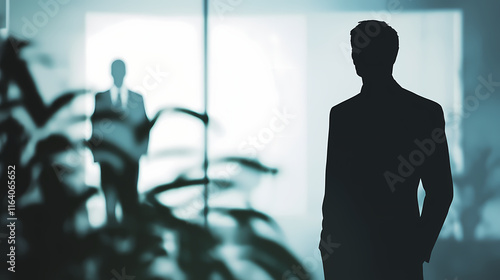 Mysterious silhouette of a business person in the background. Wraithlike. Illustration