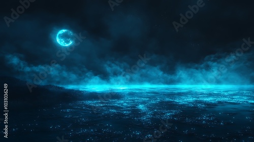 Mystical blue waters glowing under an enchanting moonlit night sky image