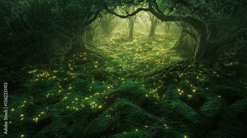forest, enchanted, magical, dreamy, fantasy, landscape, nature, mystical, tree, glowing, dark, mysterious, timberland, moss, light, environment, green, surreal, aethereal, peaceful, calm, tranquil, serenity, beauty, atmosphere, fairy tale, whimsical, scenic, foliage, wilderness, botanical, ground, illumination, pristine, sparkle, vista, wood