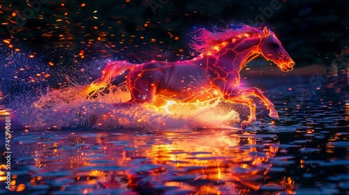 Mystical fire horse symbolizing the power of the natural element. A hoofed animal (stallion or mare) running fast. Illustration for cover, card, interior design, brochure or presentation.