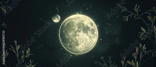 moon, celestial, star, night, nature, landscape, glow, sky, planet, astronomy, darkness, light, beauty, serenity, illustration, fantasy, atmosphere, art, background, flora, space, magical, dream, abstract, shine, twinkle, mythology, forever, cosmic, scenery, aethereal, tranquil, foliage, seasonal, high-coloured, enchantment, wonder, peaceful, artistic, detail, radiance, shining, mysterious, harmony, silhouette, peacefulness, universe