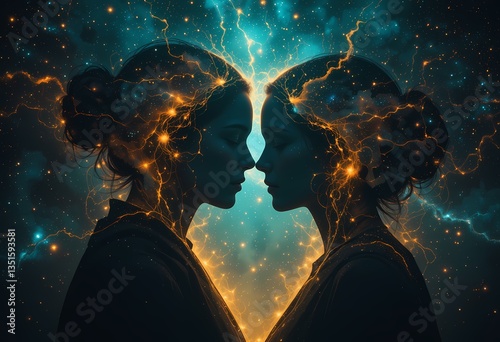 aura, dream, fantasy, galaxy, harmony, imagination, mind, mystical, peace, serenity, silhouette, soul, spirit, spiritual, star, togetherness, twin, oneness, universe, vision, woman, glow, artistic, digital artwork, graphic, balance, power, cosmic, love, body, energy, connection, female, illustration, light, wallpaper, art, space, abstract, dark, design, creative, pattern, texture, beauty, background