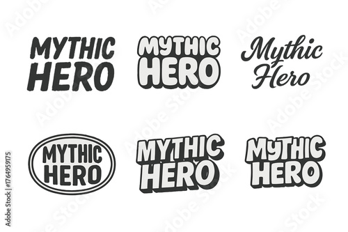 mythic, hero, variation, set, lettering, harmonious, same, emblematic, concept, grunge, textured, brush, rounded