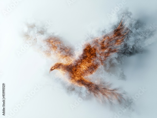phoenix, bird, fire, smoke, mythical, fantasy, digital artwork, illustration, magical, supernatural, wing, feather, ember, flames, mystic, spiritual, power, strength, transformation, rebirth, energy, abstract, dramatic, atmospheric, fiery, majestic, legendary, celestial, mystical, radiant