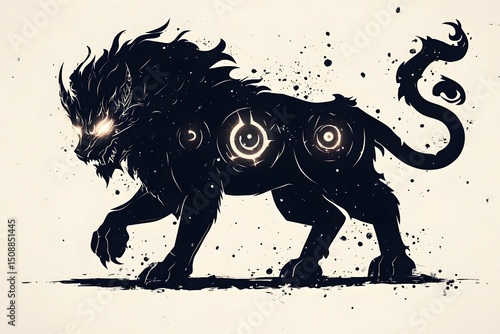 mythical, creature, silhouette, minimalist, rune, fantasy, dark, ominous, mysterious, abstract, glowing, surreal, supernatural, enigmatic, powerful, monochrome, symbolism, conceptual, digital, metaphoric, primitive, ancient, formidable, intense, captivating, evocative, atmospheric, striking, mesmerizing, haunting, intriguing, dynamic, bold, expressive, visionary, imaginative, thought provoking