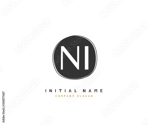N I NI Beauty vector initial logo, handwriting logo of initial signature, wedding, fashion, jewerly, boutique, floral and botanical with creative template for any company or business.