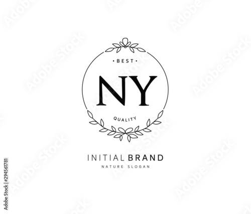 N Y NY Beauty vector initial logo, handwriting logo of initial signature, wedding, fashion, jewerly, boutique, floral and botanical with creative template for any company or business.