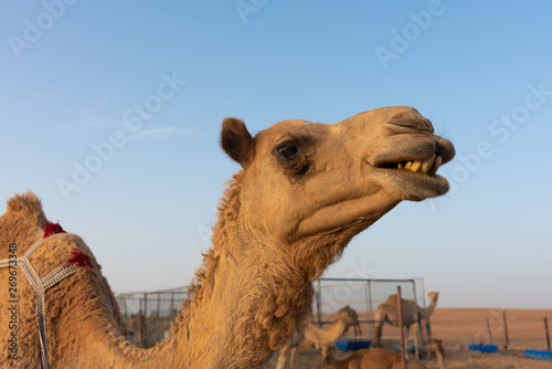 nature, animal, mammal, camel, close-up view, head, nose, eye, face, whisker, maul, mouth, countenance, camel, dromedary, arabia, wilderness, heat, dry, dryness, carrier, breeding, milk, farm, fur, sahara, heaven, blue, beige, teeth, teeth, halitosis