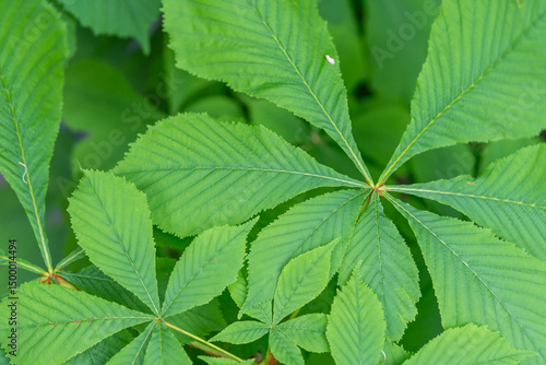 Nahaufnahme von grünen Blättern einer Kastanie