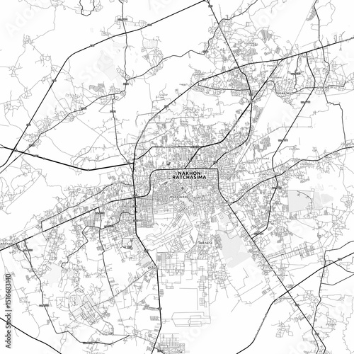 Nakhon Ratchasima Area Map with Labels and Neighborhoods - One color, minimalistic design