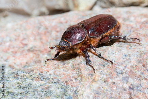 Nashornkäfer (Oryctes nasicornis) Weibchen auf einem Stein