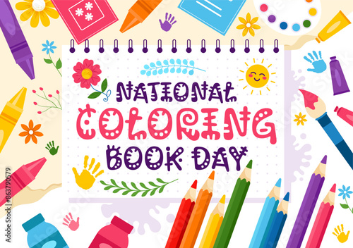National Coloring Book Day Vector Illustration for August 2nd featuring Colored Pencils or Crayons for Drawing in a Flat Style Cartoon Background