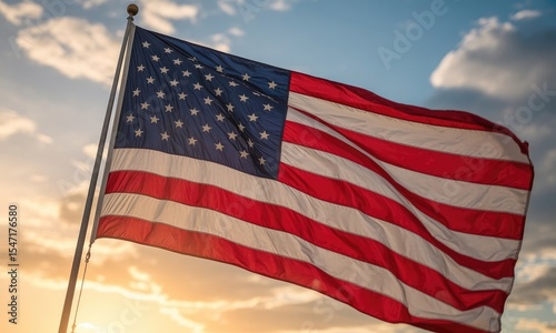 flag, wave, american, patriotic, symbol, national, star, stripes, red, white, blue, sky, cloud, sunset, fabric, textile, daytime, politic, country, freedom, liberty, independence, illustration, graphic, design