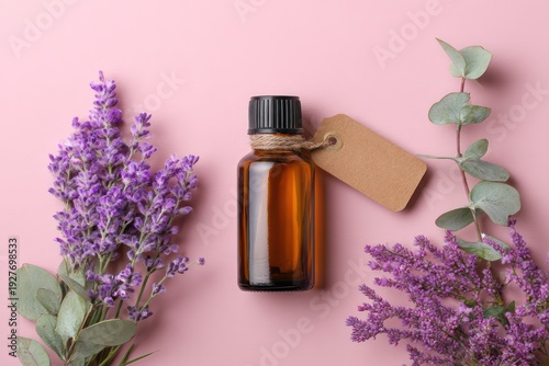 bottle, oil, essential, lavandula, eucalyptus, label, pink, wellness, aromatherapy, natural, organic, herbal, spa, fragrance, scent, health, beauty, pure, care, treatment, glasses, amber, dropper, flower, leaf, relax, calm, aroma, product, skincare, cosmetic, medicine, therapy, essence, extract, floral, still, life, nature, well-being, hygiene, clean, fresh