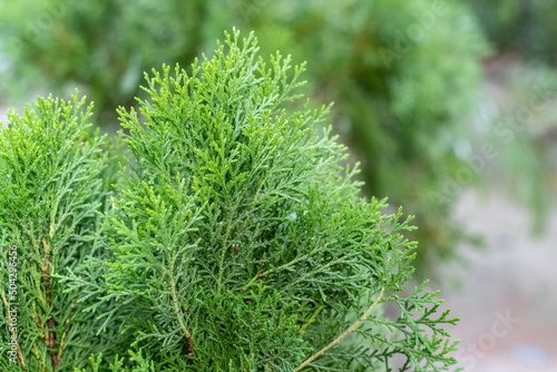 Natural background of thuja branch with copy space