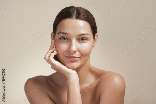 woman, skincare, soft focus, radiant, smiling, female model, wellness, natural beauty, portrait, spa, smooth skin, studio, elegance, minimal, high-quality, youthful, confident, isolated, attractive, skincare, hydratation, soft light, happy, lifestyle, glow, fresh, serene, calm, banner, promo, beauty, closeup, cosmetic