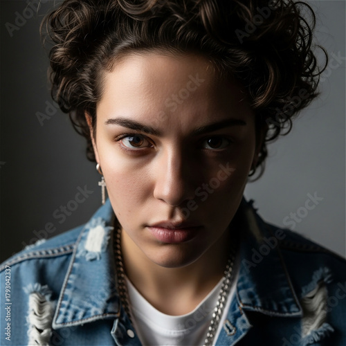 Natural Close-Up Portrait of a Young Woman with Serious Expression