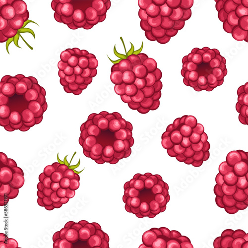 Natural fresh organic forest raspberry with green leaves. seamless pattern vector illustration. Bright, pink, juicy, summery, fruity. for wrapping paper and textiles,clothing design and food packaging