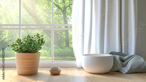 sunlight, plant, room, window, serenity, nature, interior, decor, calmness, midday, potted, plant, wooden, floor, soft, texture, fresh, air, natural, light, bowl, cosy, greenery, relaxation, minimalism, home, organic, bright, environment, comfort, curtain, peaceful, atmosphere, indoor, space, design, aesthetic, daylight, inviting, simplicity, zen, element, calmness, optical, freshness, soothing, balance