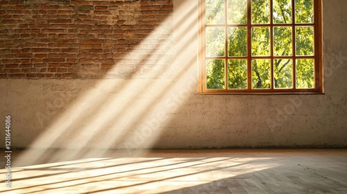 light, window, room, sunlight, interior, rustic, nature, shadow, wall, brick, wood, beam, brightness, space, decor, design, architecture, inviting, peaceful, calming, tranquil, home, green, empty, illumination, warmth, indoor, cosy, summer, relaxation, bright, aesthetic, empty space, clean, minimalist, perspective, natural, serene, environment, comfortable, shadow play, setting, scenery, view, daylight