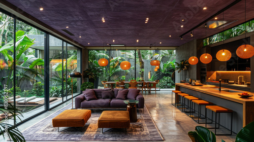 purple, nature, shade, dining, room, resort, lush, jungle, foliage, rainforest, villa, house, hotel, exclusive, no people, living, comfortable, furniture, contemporary, indoor, recreation, goggles, journey, relaxation, elegance, apartment, floor, luxury, window, cabinet, minimalist, scenery, sunlight, chair, dining room, cosy, interior, copy space, kitchen, home, empty, space, modern, lifestyle, holiday, decoration, adventure, background, violet