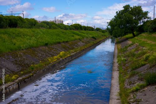 Natural scene. sky, tree, smal lake in the park in the city. Time to rest..