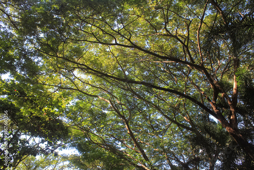 tree, canopy, leaf, green, nature, forest, foliage, lush, sky, leaf, sunlight, environment, natural, plant, wood, landscape, crown, view, park, botany, scenery, tree branch, jungle, background, fresh, summer, shade, flora, peaceful, oxygen, wild, blue, growth, vegetation, beautiful, light, tall, garden, biology, greenery