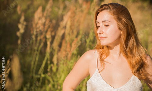 Natural trend without make up, women's beauty, no filter no retouch, woman as she is. Girl at Nature relax time